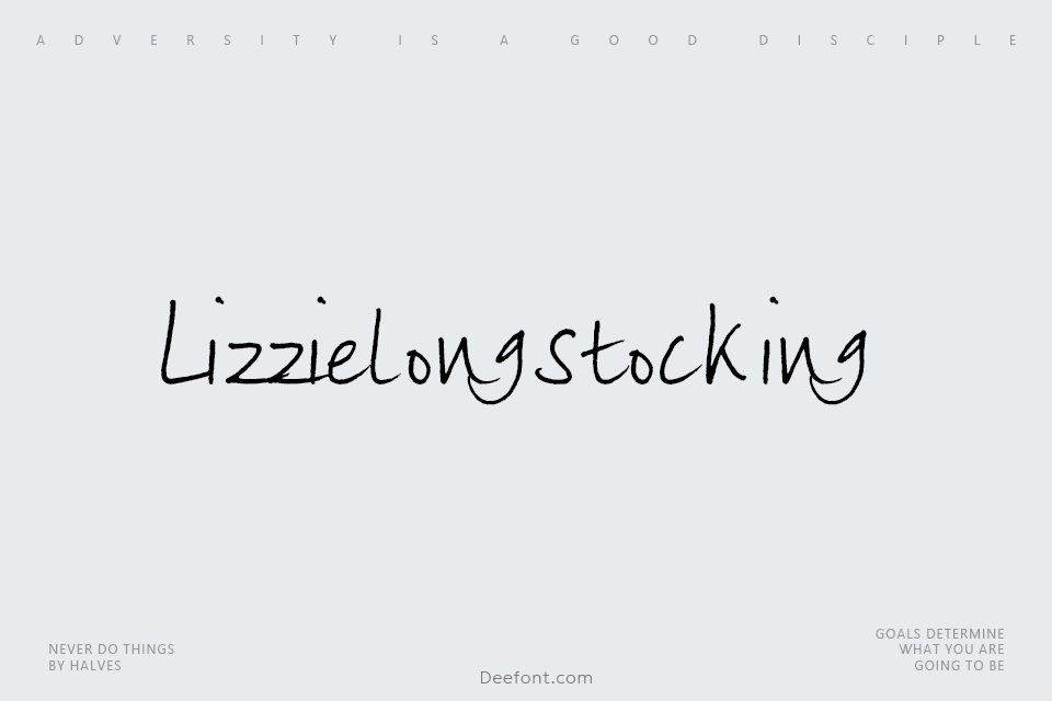 Lizzielongstocking is a whimsical and playful handwritten script font featuring exaggerated letters with quirky serifs that add character and charm to any design. This delightful typeface exudes personality and is perfect for creative branding projects, fun posters, unique invitations, and any work requiring a playful flair. The font combines casual elegance with distinctive quirks, making it ideal for designs that need to stand out and capture attention with a touch of whimsy.