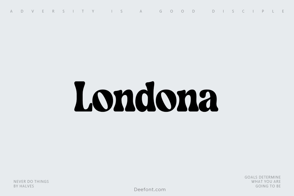 Londona is a bold, groovy display serif font crafted by Rantautype, capturing retro charm with exaggerated curves and playful design elements. Its thick strokes and 70s-80s aesthetic make it perfect for eye-catching posters, album covers, and branding projects that demand personality and visual impact. The font features distinctive uppercase and lowercase characters with ligatures and alternates, offering versatility for headlines, logos, and creative typography that leaves a lasting impression.