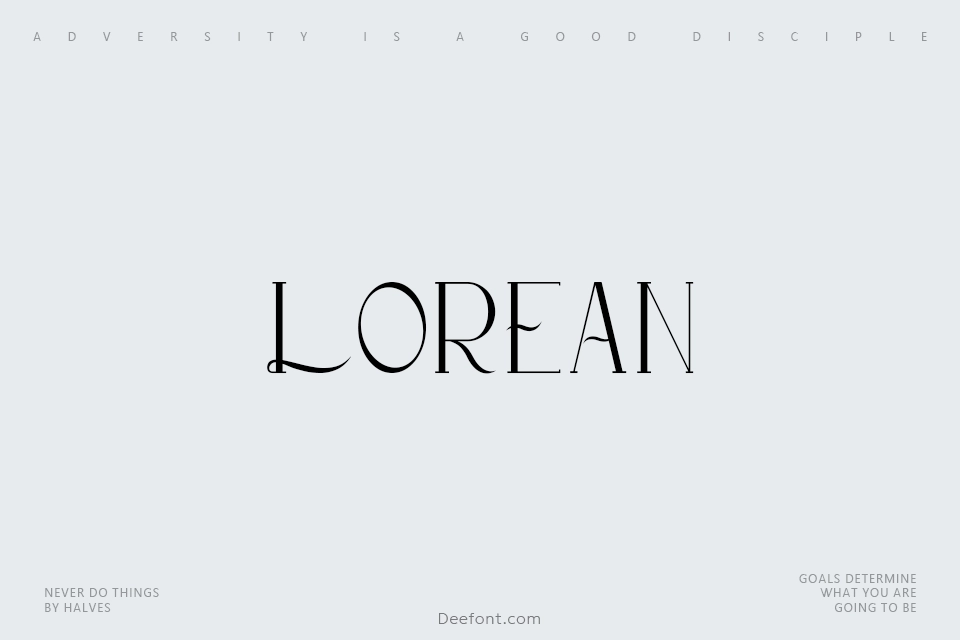 Lorean is a modern serif typeface inspired by elegance and femininity, offering a minimalist and iconic design perfect for creating distinctive logos, packaging, magazines, and landing pages. This charming font combines contemporary aesthetics with sophisticated character details, making it an excellent choice for designers seeking to enhance their branding projects and creative work with distinctive typography that captures attention and conveys timeless style.