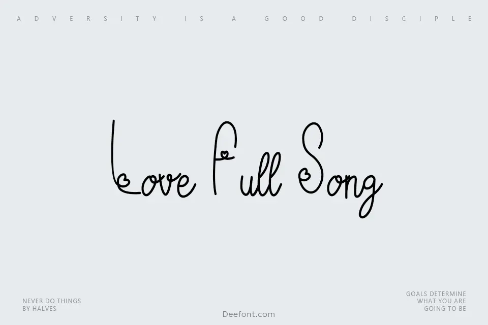 Love Full Song Font is a captivating script typeface designed by nomlimofont. Featuring fluid, connected strokes and a natural handwritten rhythm, this font exudes romance and elegance. Ideally suited for wedding invitations, signature logos, and sentimental branding, it brings a personal, sophisticated touch to any design project requiring a graceful and authentic feel.