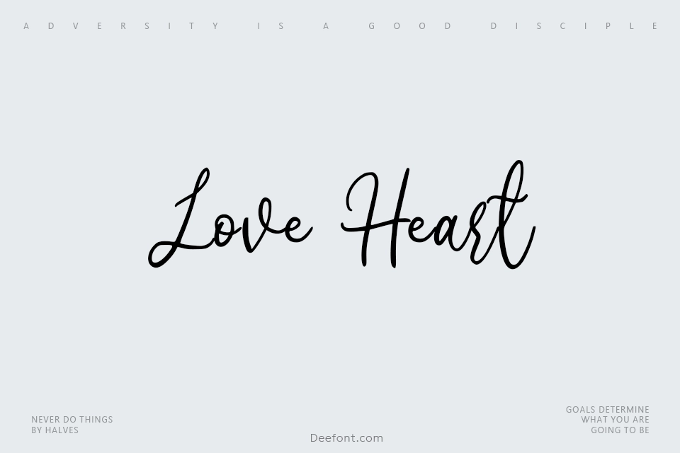 Love Heart is a beautiful calligraphy font designed for romantic and elegant typography. This handwritten script font features delicate strokes and charming details, making it perfect for wedding invitations, greeting cards, branding projects, and decorative text. With its flowing letterforms and graceful curves, Love Heart adds a touch of sophistication to creative designs. The font includes comprehensive character support for professional typography applications.