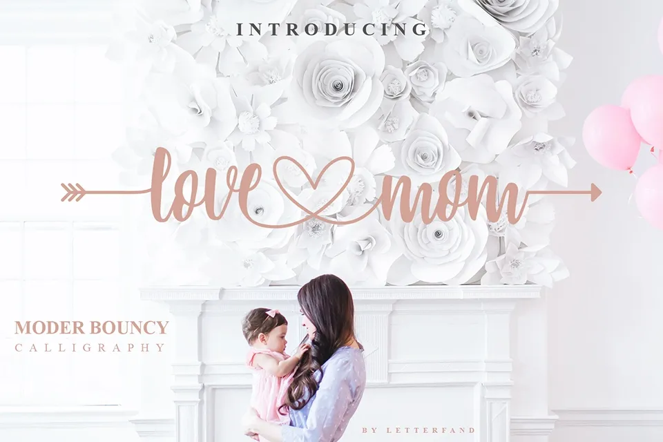 Love Mom Font feels incredibly elegant and flowing. It looks stunning on wedding invitations, thank you cards, quotes, greeting cards, logos, business cards and every other design which needs a handwritten touch. It features a varying baseline, smooth lines, gorgeous glyphs and stunning alternates.