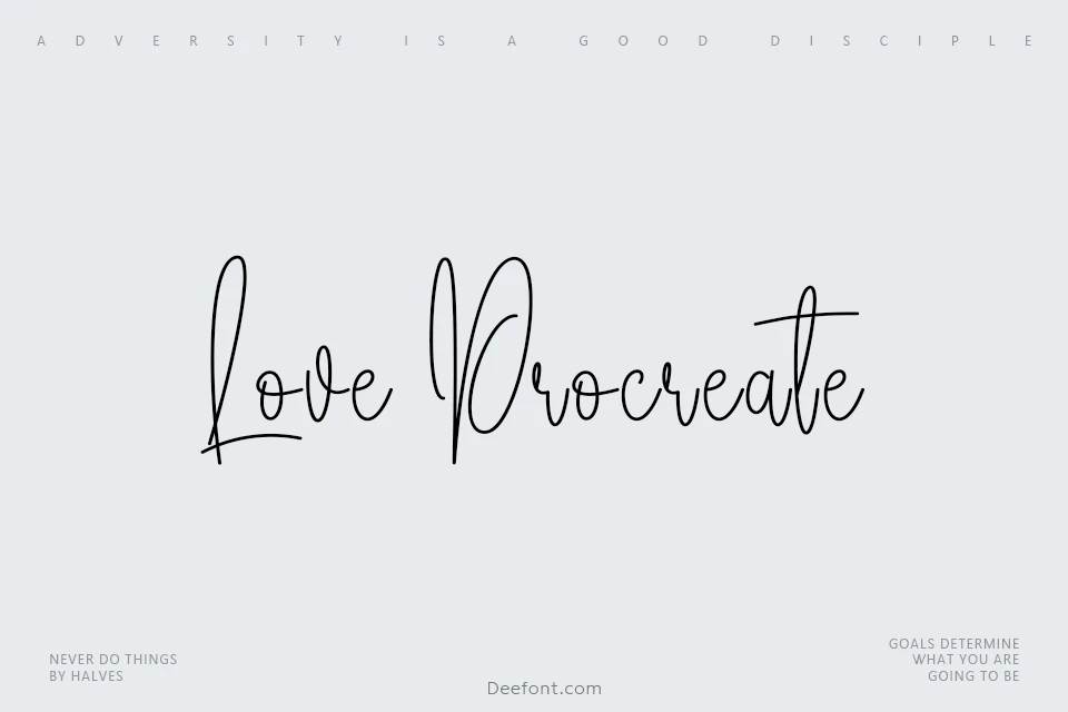 Love Procreate Script Font is a bold, contemporary handwritten script font, perfect for adding expressive elegance and a modern touch to your designs. Its flowing, artistic strokes make it ideal for creative projects that require a personal and stylish flair, such as wedding invitations, branding, and digital artwork.