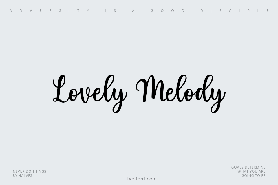 Lovely Melody is a modern calligraphy font featuring elegant swashes and romantic decorative elements including heart-shaped characters. Created with graceful curves and delicate flourishes, this script typeface is perfect for wedding invitations, greeting cards, social media graphics, and handcrafted designs. The font includes lowercase beginning and ending swashes for enhanced versatility and authentic elegance.