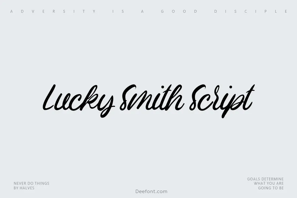 Lucky Smith Script is a beautifully crafted handwritten script font featuring smooth, connected letterforms with organic flowing strokes. The typeface displays elegant calligraphic characteristics with natural brush-like qualities, creating an intimate and sophisticated aesthetic. Its curvilinear forms and graceful proportions make it exceptionally suitable for invitation design, greeting cards, wedding materials, motivational quotes, event posters, festival signage, and any creative project requiring elegant hand-drawn elegance and personal warmth.