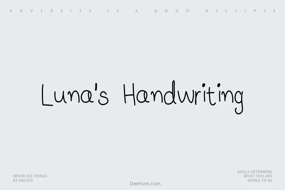 Luna’s Handwriting is a delightfully charming handwritten typeface designed with playful doodles and natural, flowing letterforms. This cute and approachable font features organic strokes and casual letterforms that evoke warmth and personality, making it ideal for invitations, greeting cards, poster designs, scrapbooking, blog headers, and any creative project seeking a friendly, personal aesthetic. The whimsical character of the font brings joy and creativity to both digital and print applications.