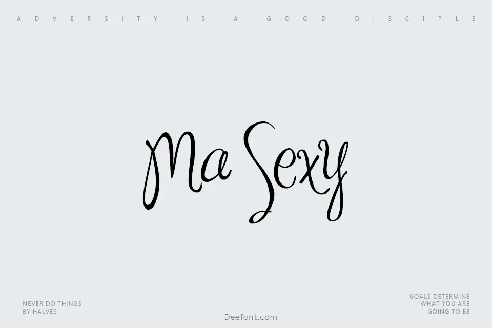 Ma Sexy Font is a playful handwritten script with flowing strokes and sensual curves, perfect for attention-grabbing logos, bold titles, packaging, party flyers, and seasonal poster designs. Its lively rhythm and irregular baseline give creative projects an expressive, sexy personality while keeping text legible at larger display sizes.