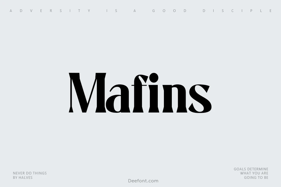 Mafins Font is a bold display serif font that combines thick and thin strokes to create a formal, modern, and elegant impression. The dramatic contrast in line weights and the small hooks on the letter edges enhance both its style and legibility, making it suitable for a variety of design projects such as posters, banners, logos, magazine covers, quotes, invitations, and more. With features like stylistic alternates, ligatures, multilingual support, and PUA encoding, Mafins delivers versatility and sophistication for both print and digital designs.