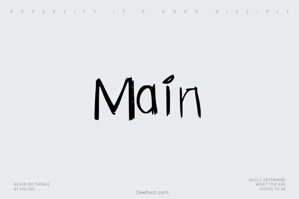 Main is a distinctive script typeface that brings a modern, playful energy to design projects. With smooth, flowing letterforms and casual cursive characteristics, this font excels in creating engaging titles, poster designs, and decorative typography. The 66 glyph set provides solid coverage for basic English text, making it ideal for display applications where a relaxed yet contemporary aesthetic is desired. Perfect for social media graphics, headline designs, greeting cards, and creative branding projects that need personality and visual impact.