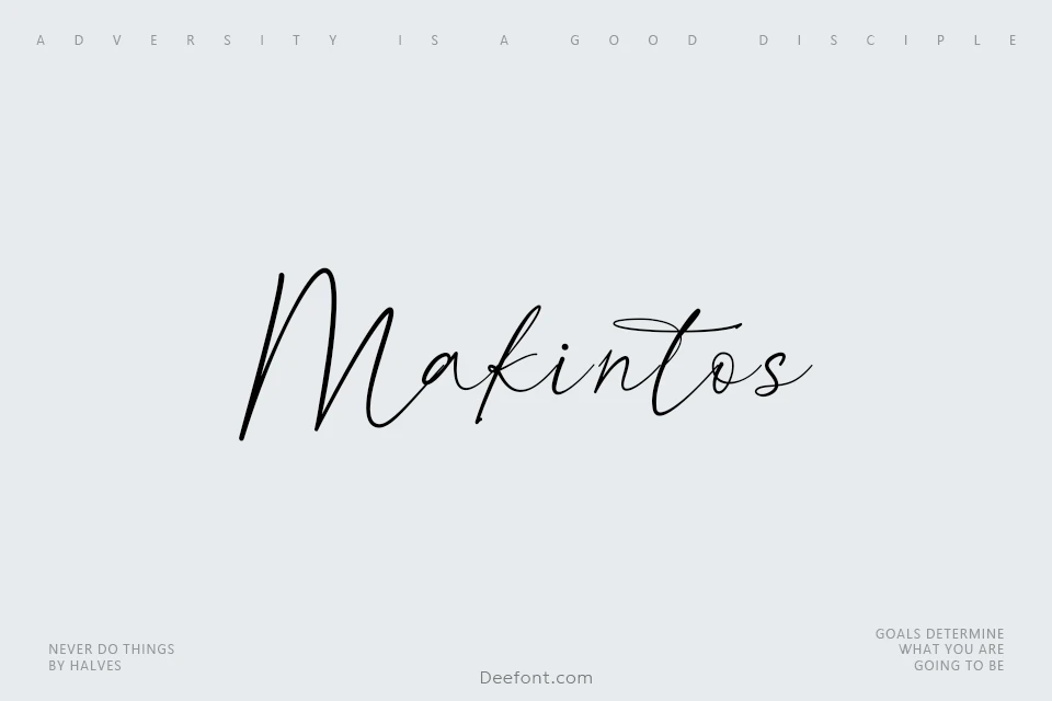 Makintos Font is a beautiful, classic, and stylish handwritten script font crafted by Basnistd. It is perfect for signage, branding, websites, red wine labels, and editorial designs. The font includes all uppercase and lowercase letters, multilingual support, punctuation, and swash features, making it ideal for creative and elegant typographic projects. Please note that Makintos is available as a demo font for personal use only, and the full version with a commercial license can be purchased separately.