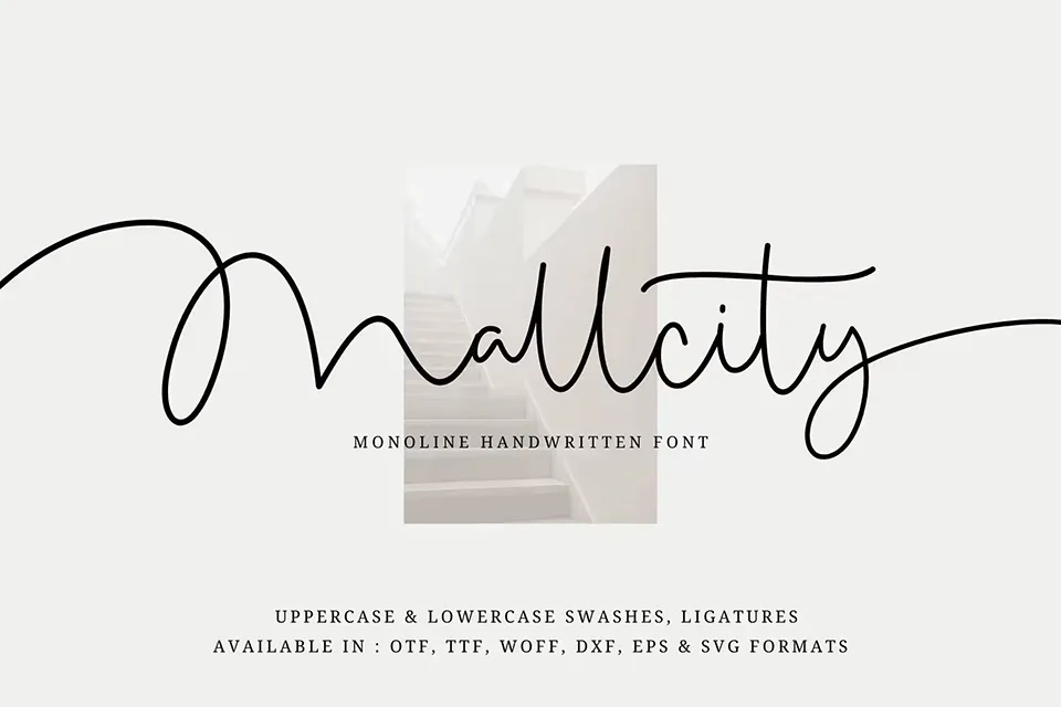 The Mallcity Font font is a sophisticated monoline handwritten script featuring elegant swashes, intricate alternates, and ligatures. Its flowing, curved lines make it ideal for high-end design projects, such as branding, invitations, and editorial layouts. With both uppercase and lowercase options, Mallcity brings a modern yet personal touch to any creative work.
