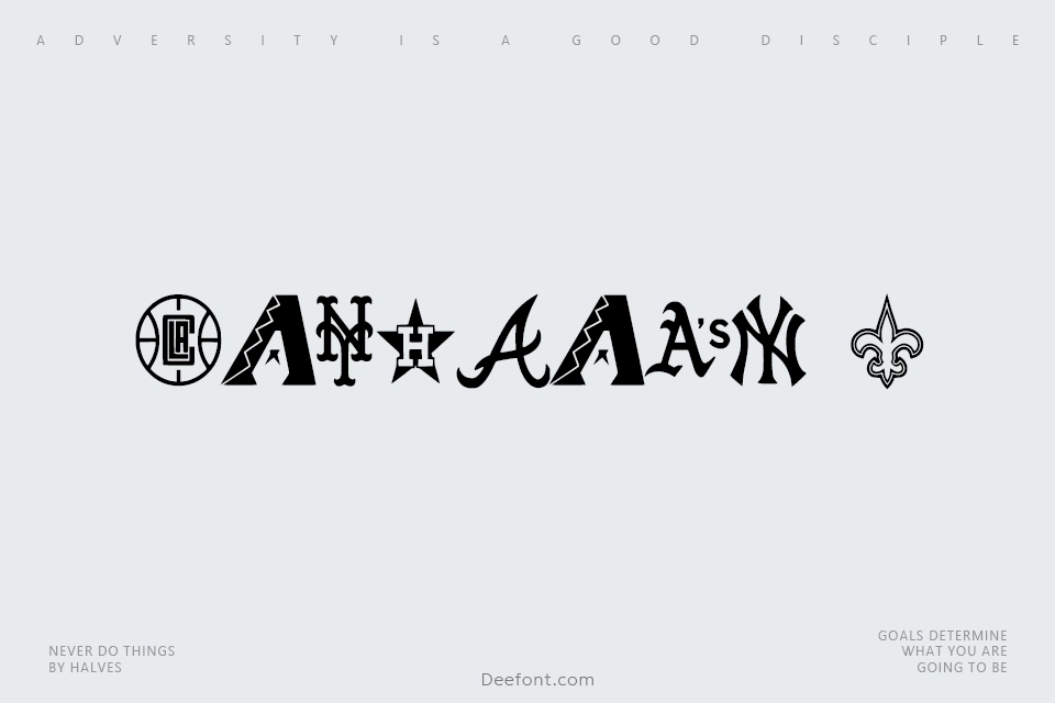 It consists of sports team logos, particularly teams from the NBA, MLB, NFL, NHL, and MLS. It also includes sponsors for sports teams, and a “VS.” and @ sign intended to be used between logos and schedule games.
