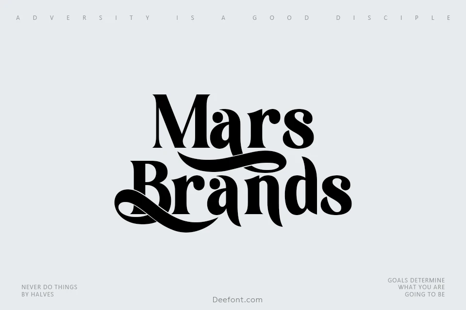 Mars Brands Font is an elegant and smooth serif font designed to evoke a romantic and lovely look. It features beautiful stylistic alternates, discretionary ligatures, and is PUA encoded, making all glyphs and swashes easily accessible. Perfect for a wide range of creative projects, including greeting cards, wedding invitations, posters, logotypes, product branding, and more, Mars Brands brings sophistication and charm to your typography.