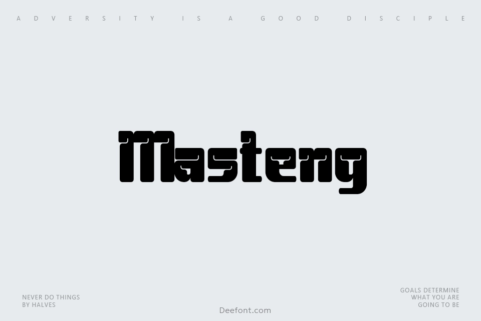 Masteng is a groovy retro display font that features a distinctive anatomical design with contrasting thick and thin lines, making it visually unique and eye-catching. This bold and powerful typeface brings a nostalgic vintage aesthetic to creative projects, perfect for headlines, posters, branding, logos, and signage. The font supports over 214 languages and includes uppercase, lowercase, numerals, punctuations, and alternate characters. With its playful 70s-inspired vibe and striking visual presence, Masteng adds superior and memorable impact to any design that demands attention.