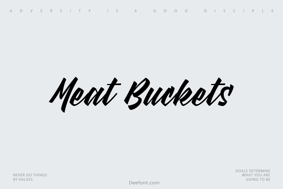 Meat Buckets is a nervous script font with a taste of old-school style, characterized by its energetic brush strokes and dynamic flow. Featuring 202 characters with extensive design variations, this typeface brings a bold, contemporary edge to your creative work. Designed for designers who seek personality and unconventional flair in their typography, Meat Buckets combines playful energy with sophisticated script aesthetics, perfect for branding, display work, and eye-catching headlines.
