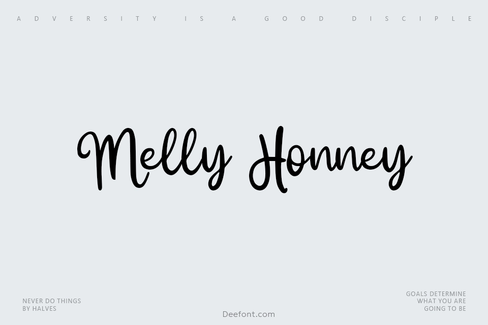 Melly Honney is a handdrawn script font created by Allouse Studio, an Indonesian design team. This elegant calligraphy-inspired typeface features flowing letterforms perfect for titles, logos, product packaging, branding projects, and magazines. With its charming and feminine character, Melly Honney brings a sophisticated touch to creative designs. The font contains 114 glyphs supporting multiple languages and accents. Its versatile style makes it an excellent choice for decorative typography, wedding invitations, and artistic compositions. Available as a demo version for personal use, it offers excellent value for designers seeking expressive, handwritten script typefaces.