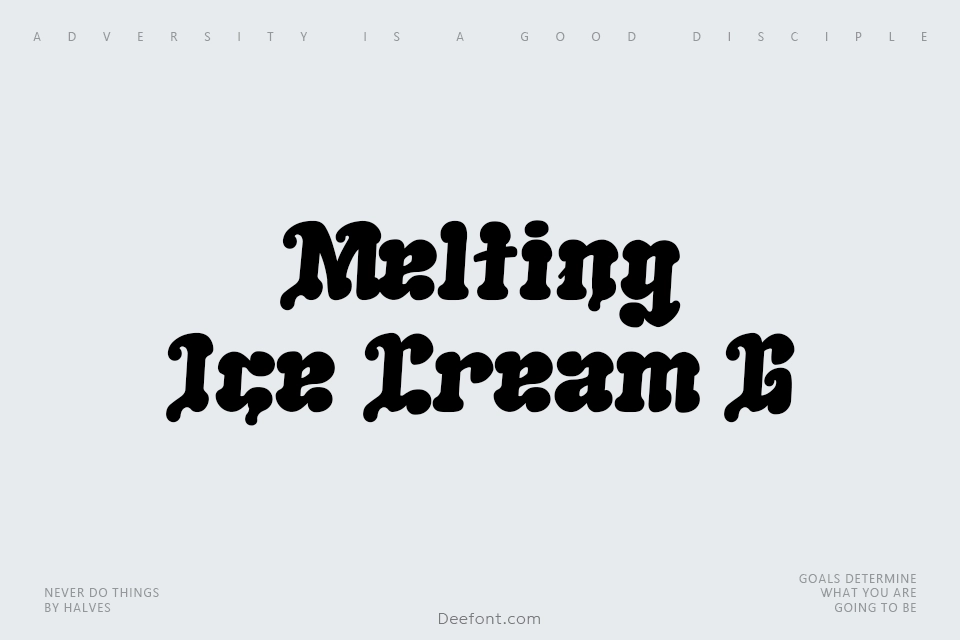 Melting Ice Cream G is a playful and whimsical display font that captures the essence of dripping ice cream with its bold, rounded letterforms. Designed with a distinctive melting effect, this Gothic-style typeface features thick strokes and smooth curves that create a fun, eye-catching appearance perfect for creative projects. The font’s unique character set includes 221 glyphs, offering designers versatility for posters, branding, children’s books, packaging design, and summer-themed graphics. Its groovy aesthetic combines retro charm with modern appeal, making it ideal for ice cream shops, dessert brands, food-related designs, and any project requiring a touch of sweetness and creativity. The expanded width and decorative style ensure maximum visual impact while maintaining excellent readability in display sizes.
