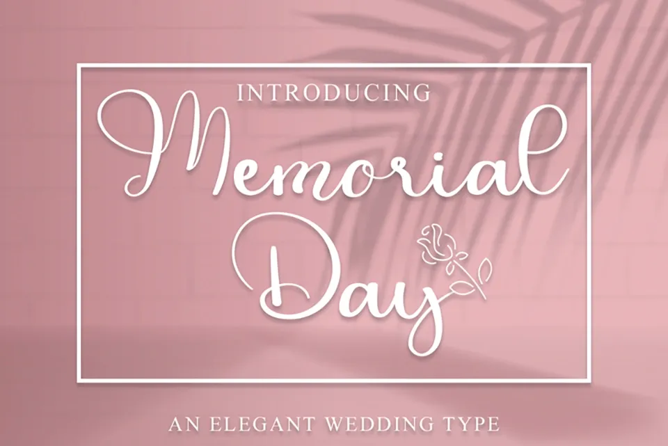 The Memorial Day Font font is a charming and elegant handwritten typeface that brings a touch of beauty and sophistication to your designs. Perfect for wedding invitations, thank you cards, quotes, greeting cards, logos, and business cards, its versatile and captivating style adds a heartfelt, personal feel to every project. Each character is carefully crafted for harmony and refinement, making Memorial Day ideal for any design that needs a warm, authentic, and memorable handwritten touch.