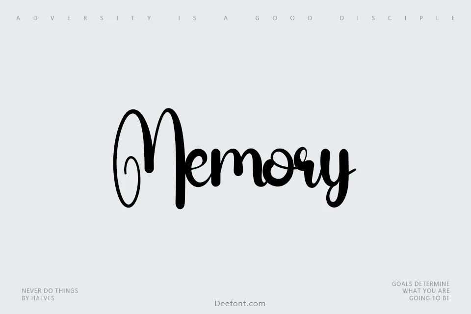 Memory Font is a creative handmade script typeface featuring smooth, flowing curves and a playful, personal touch. Its elegant yet approachable style makes it ideal for invitations, greeting cards, branding, and any design that needs a warm, handcrafted feel. Memory Font stands out with its distinctive swashes and friendly character, bringing a sense of nostalgia and charm to your creative projects.