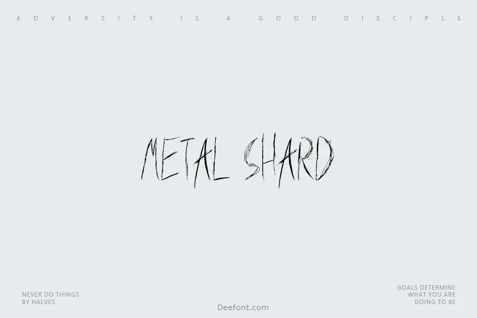 Metal Shard is a fierce, jagged display font designed by Xerographer Fonts that mimics the chaos of shattered steel. Its sharp, aggressive strokes and distressed texture make it perfect for dark, high-impact designs. This typeface excels in heavy metal band logos, horror movie posters, and grunge-themed creative projects, delivering a raw, industrial aesthetic that commands immediate attention.****Donate $15-$25 For Personal Use!***Contact FOR ANY Commercial Use / Licensing!****PayPal / Contact / Donate / Inquiries: maxinfeld@gmail.coms