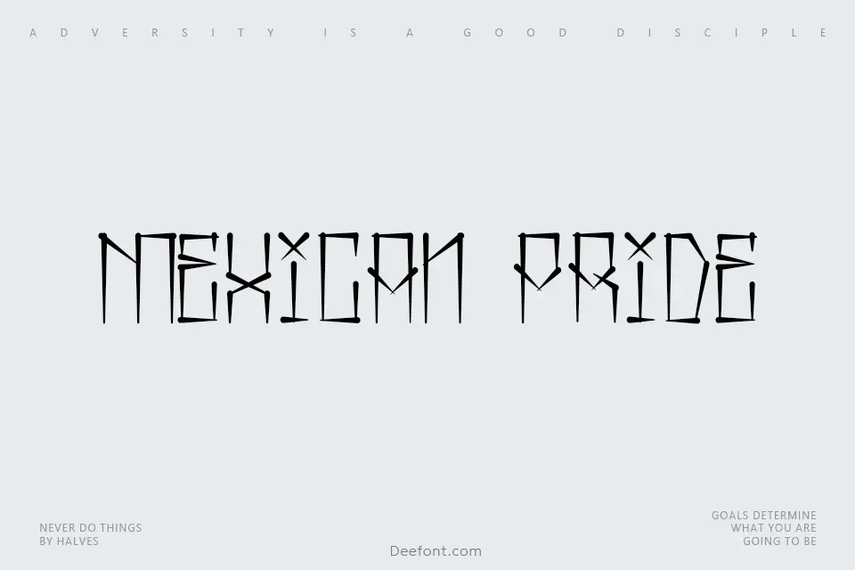 Mexican Pride is a vibrant and bold typeface inspired by Mexican street culture and cholismo aesthetics. Featuring intricate patterns and distinctive graffiti-style characters, this Mexican Pride font perfectly captures the passion and energy of Mexican artistic expression. Ideal for posters, product packaging, flyers, and social media graphics, it brings authentic cultural flair to creative projects while celebrating Mexico’s rich heritage and artistic traditions.