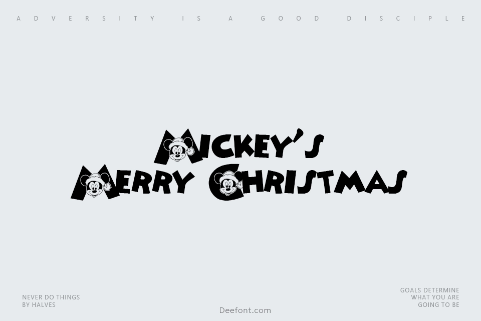 Mickey’s Merry Christmas is a festive and playful display font featuring bold, rounded characters inspired by the iconic Disney character. This cheerful typeface is perfect for Christmas-themed designs including holiday cards, party invitations, festive decorations, and seasonal projects. With its whimsical style and joyful spirit, it captures the magic of the holiday season and brings delightful charm to any creative work requiring festive flair.