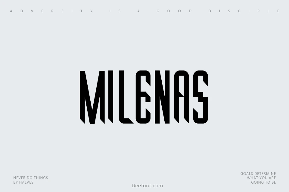 Milenas Font is a modern sans serif typeface designed for the Brutalism era, featuring a futuristic and bold look. Created by delipensil, this font is ideal for making headlines stand out, adding a bold touch to titles, and giving your designs a distinctly modern and futuristic appeal. Perfect for logo design, print media, merchandise, and digital graphics, MILENAS brings a unique edge to any creative project.