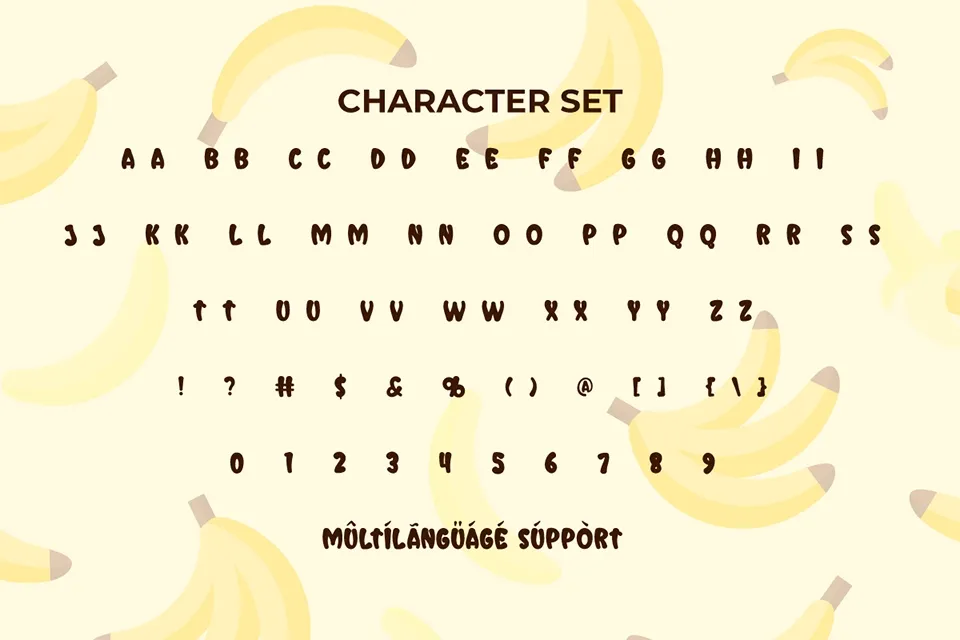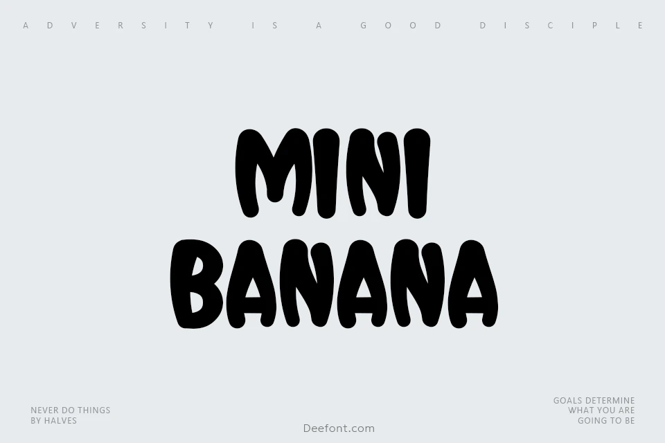 Mini Banana Font is a cute and catchy display typeface with bold, rounded letterforms that evoke the playful and inviting look of a small banana. Its short, chunky style is perfect for children’s projects, product packaging, fun branding, posters, and creative headlines. Mini Banana Font brings a cheerful, friendly vibe to any design, making it stand out with its unique, hand-crafted character.