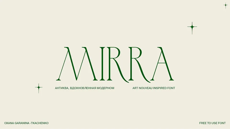 Mirra Font is an elegant serif typeface inspired by Art Nouveau, reimagining the work of early 20th-century designer Georges Auriol. Its ornamental yet modern aesthetic makes it ideal for sophisticated and creative design projects.