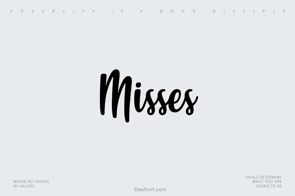 Misses Font is a gorgeous handwritten script typeface designed to deliver whimsical elegance to any project. This playful yet refined script showcases flowing strokes, smooth curves, and an inherently feminine aesthetic ideal for poster design, greeting cards, invitations, and decorative branding. With 416 alternate characters and customizable capitals, Misses empowers creative freedom. Perfect for fashion labels, wedding stationery, social media graphics, and any project requiring an enchanting, hand-crafted aesthetic.
