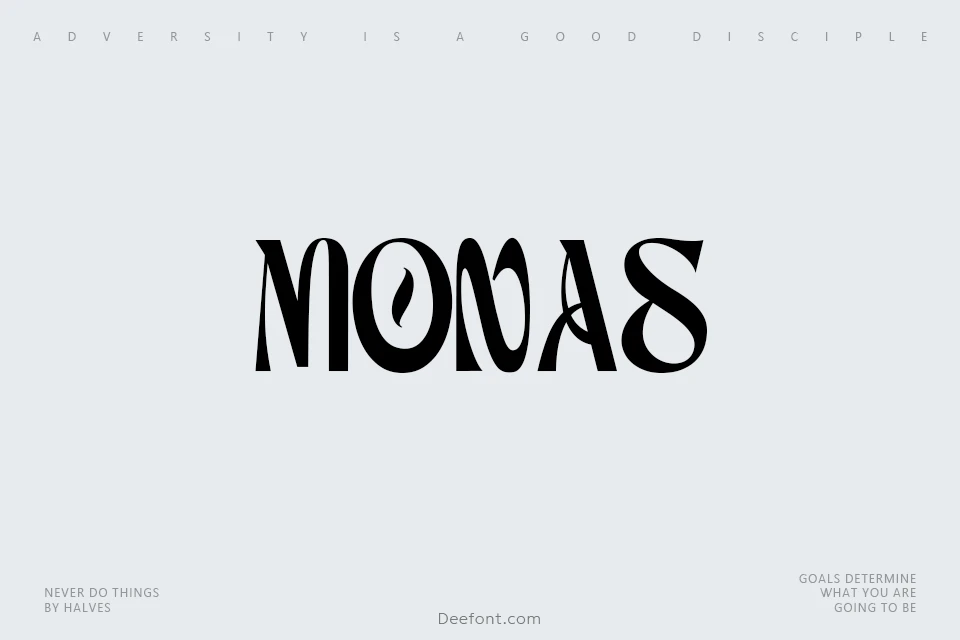 Monas Font is a modern display typeface designed for impactful branding, product packaging, invitations, quotes, t-shirts, labels, posters, logos, and more. Featuring both uppercase and lowercase letters, numbers, symbols, multilingual support, alternates, and ligatures, Monas Font brings a stylish and contemporary flair to any creative project.