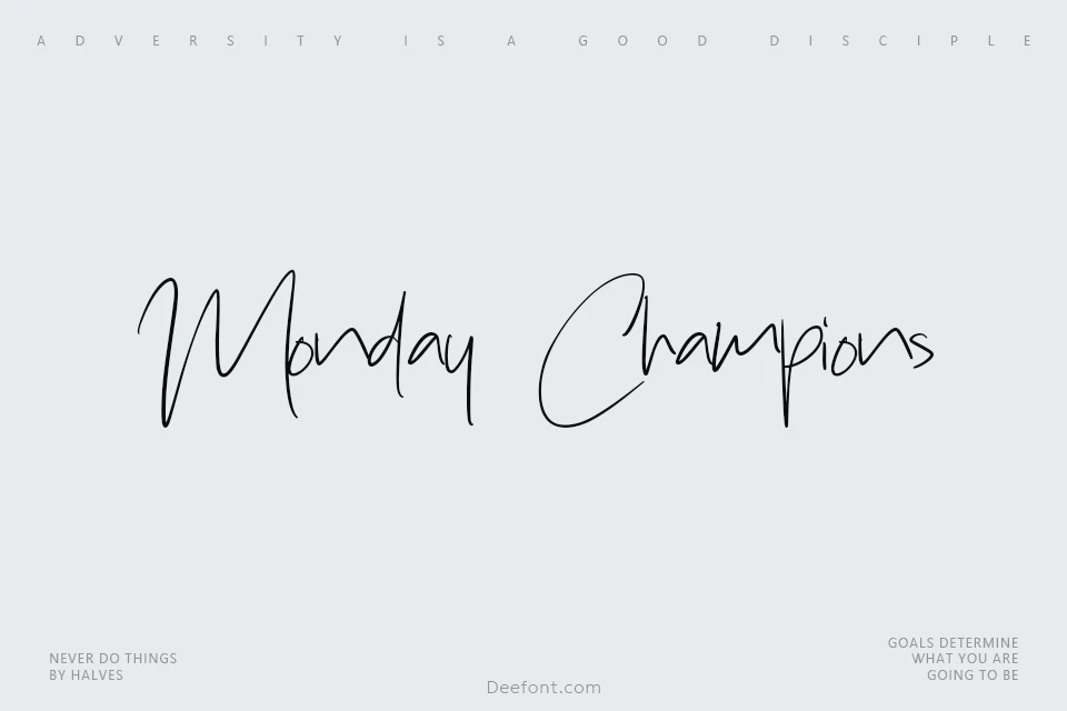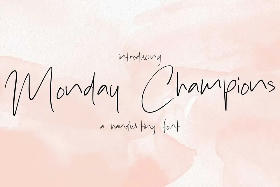 Monday Champions Font is a distinctive handwritten script typeface that captures a carefree and personal style. Created by MJType and released in July 2024, this font exudes warmth and personality, making it ideal for creative projects like wedding invitations, birthday cards, and special occasion designs. While available for free personal use, it requires a commercial license for business applications. The font features a complete set of 95 glyphs and maintains a natural, flowing aesthetic that adds a touch of authenticity to any design. Its versatile character set allows for expressive typography while maintaining readability and charm.