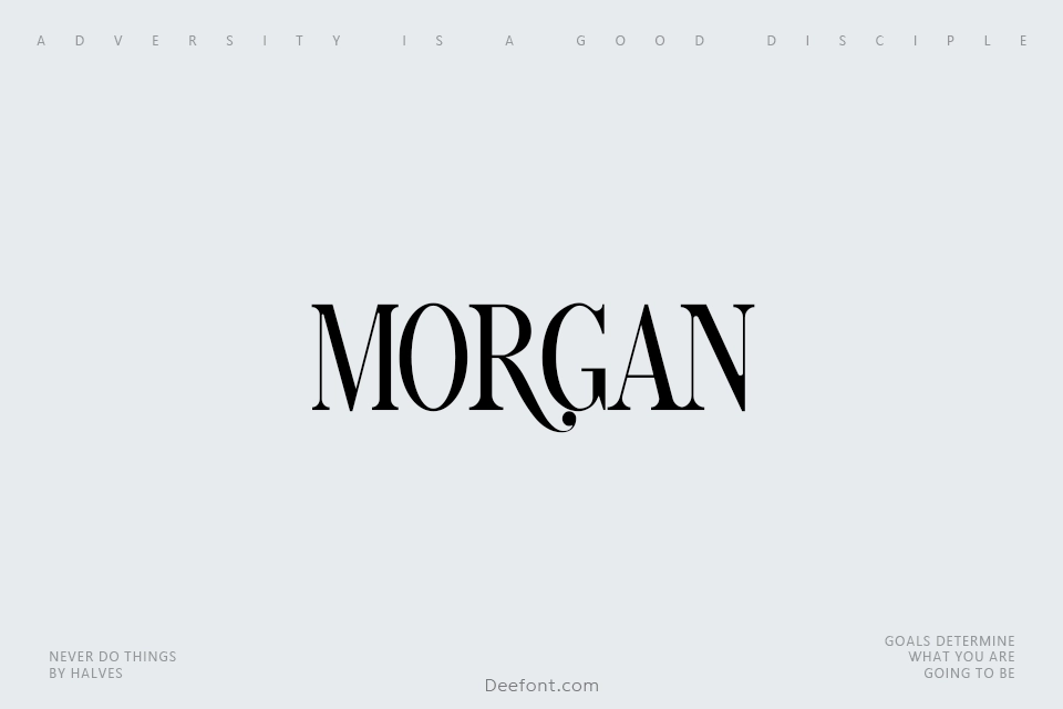 Morgan is an elegant serif typeface designed with timeless sophistication and refined clarity. This graceful font features well-balanced letterforms, smooth transitions, and traditional serif accents that work beautifully for both body text and large headings. Perfect for branding, editorial layouts, wedding invitations, product packaging, and luxury designs, Morgan delivers a professional and high-end aesthetic across digital and print platforms. With its complete character set including uppercase, lowercase, numbers, and punctuation, this versatile typeface combines classic elegance with contemporary sensibility for sophisticated creative projects.