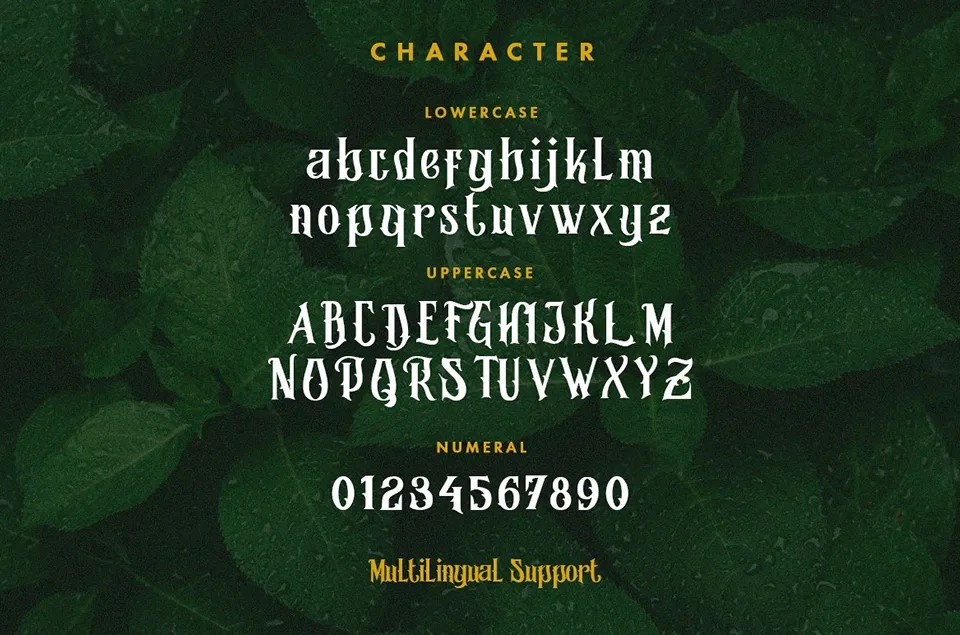 Morgana Display Font is a unique and decorative serif typeface that draws inspiration from vintage lettering and classic horror aesthetics. With its bold, expressive shapes and modern twist, Morgana Display Font is perfect for headlines, branding, apparel, invitations, packaging, advertising, and more. The font supports multilingual characters and offers both uppercase and lowercase letters, making it a versatile choice for creative projects that require a touch of mystery and elegance.