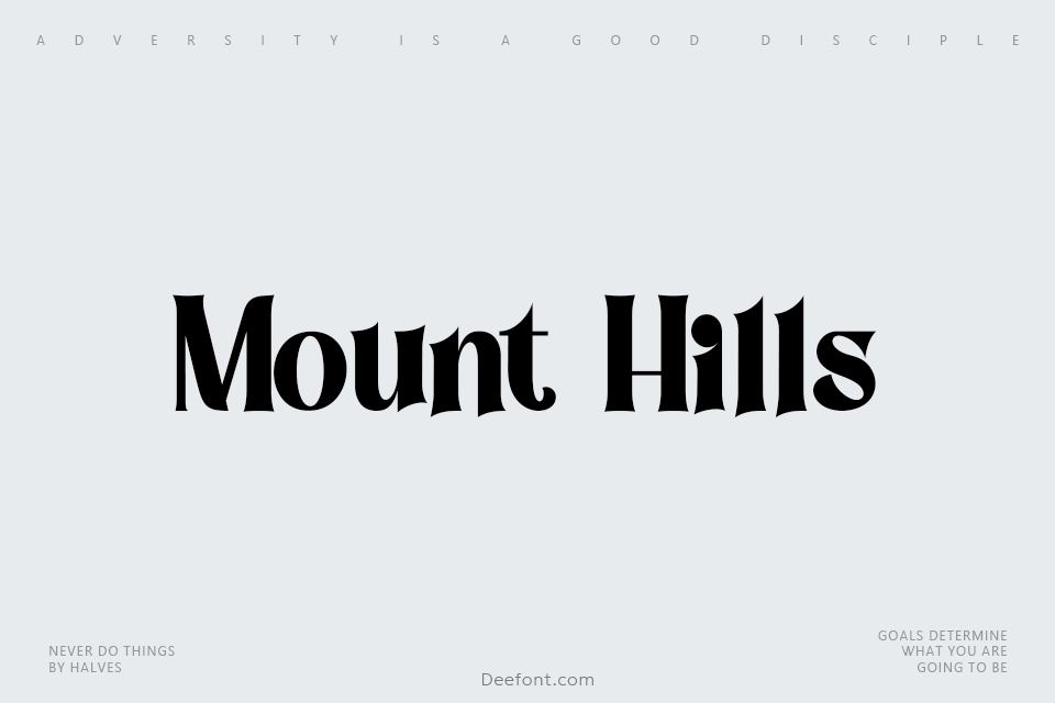 Mount Hills, This typeface has been made carefully to make sure its premium quality and luxury feel. The many alternate character on serif makes this typeface unique and stands out rather than the regular sans font, perfectly for headlines, logos, posters, packaging, T-shirts,coffee shops, restaurants, magazine’s headers, signs or gift/post cards,cafe’s and weddings or any type of advertising purpose.