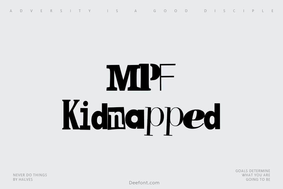MPF Kidnapped is free font for personal use (although a small donation is greatly appreciated). For commercial use, you can donate €10/$15 through PayPal (donation button). Thank you very much in advance.