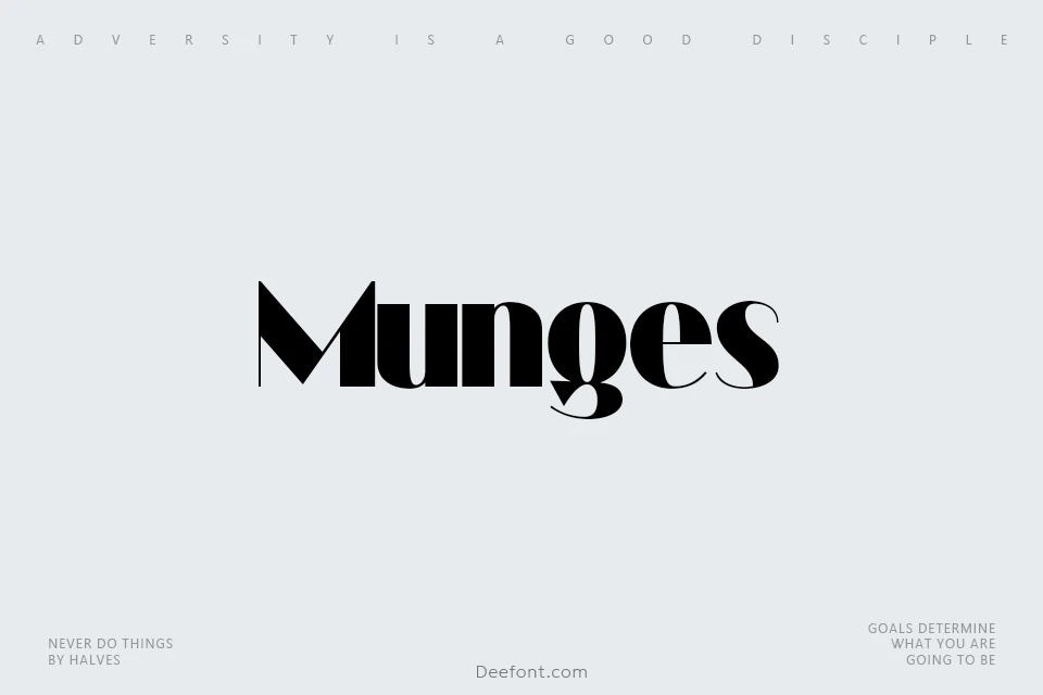 Munges Font Family is a stylish decorative sans serif typeface designed for impactful and elegant display use. Its unique letterforms and refined curves make it ideal for branding, packaging, social media graphics, and editorial headlines. With support for uppercase, lowercase, and a variety of stylistic alternates, Munges Font brings sophistication and versatility to any creative project.