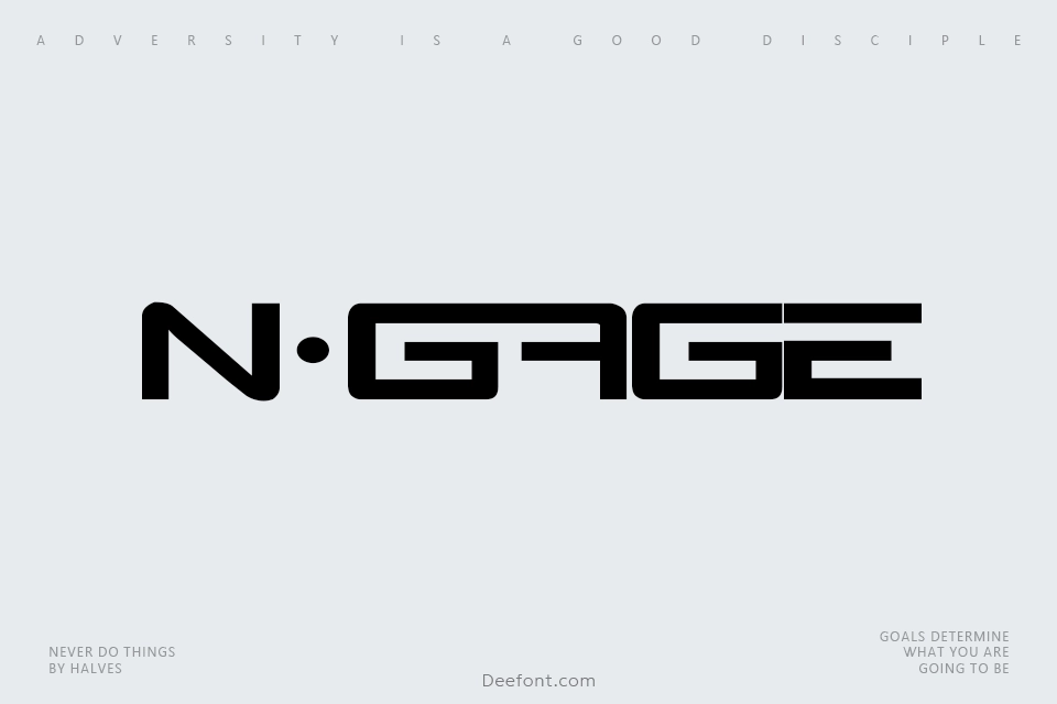N-Gage is a striking futuristic display font featuring angular, geometric letterforms that evoke a bold technological aesthetic. Designed with sharp edges and expanded width, this modern typeface excels at commanding attention in dynamic branding, headings, and digital media. Its geometric precision and blocky structure make it ideal for science fiction, gaming, video game titles, and tech-oriented projects. The font’s distinctive futuristic flair elevates visual communication with contemporary sophistication while maintaining strong readability.