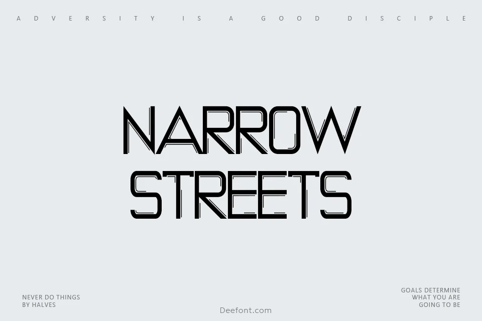 Narrow Streets is a contemporary display font designed with multilingual support, featuring both regular and outline styles. Perfect for fashion magazines, product watermarks, branding projects, logos, wedding designs, social media posts, advertisements, product packaging, labels, photography watermarks, invitations, and stationery. The font delivers elegant, narrow letterforms that create sophisticated visual impact for creative and commercial applications.