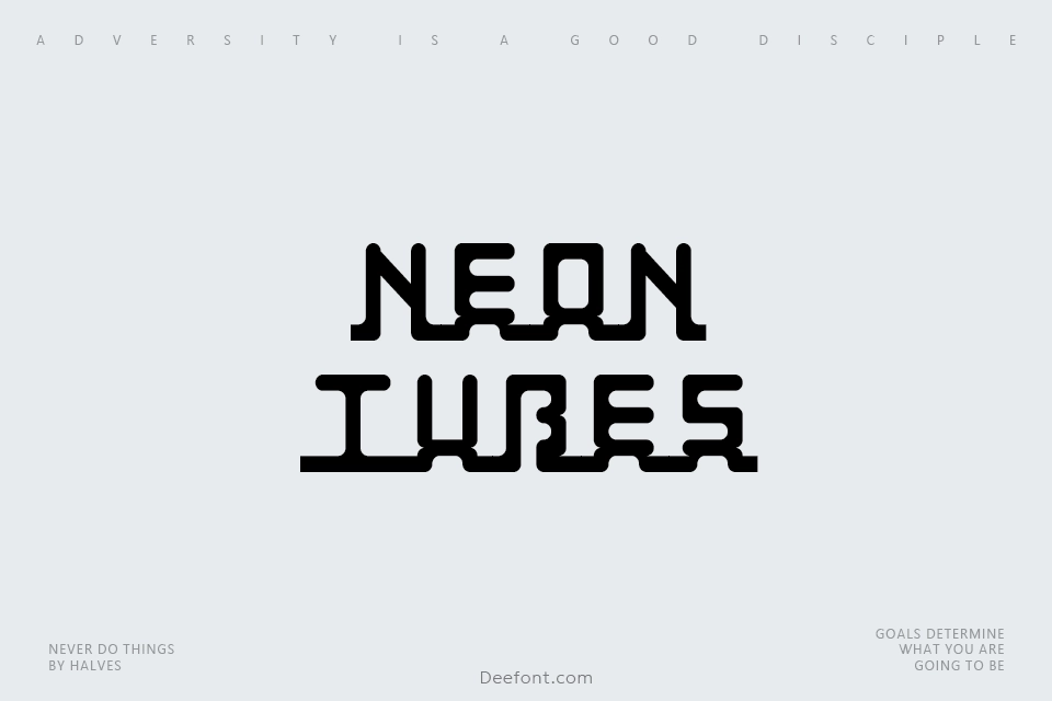 Neon Tubes is a clean and elegant neon typeface inspired by real-world signs, featuring minimal letter forms with smooth rounded corners and distinctive open start and end points. Designed for creating authentic neon light effects in digital and print design, this techno-sci-fi display font works exceptionally well for logos, branding, signage, and contemporary visual projects seeking a sleek, retro aesthetic with modern versatility.