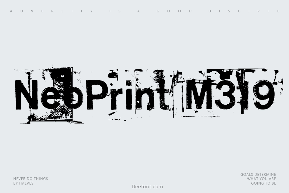 NeoPrint M319 is a distinctive display font featuring a bold, grungy aesthetic inspired by vintage rubber stamps. With its distorted letterforms and raw industrial charm, this typeface excels in branding, editorial layouts, and creative projects seeking an edgy, unconventional typographic voice. Best utilized at large display sizes with OpenType ligatures and alternates enabled for enhanced visual impact.