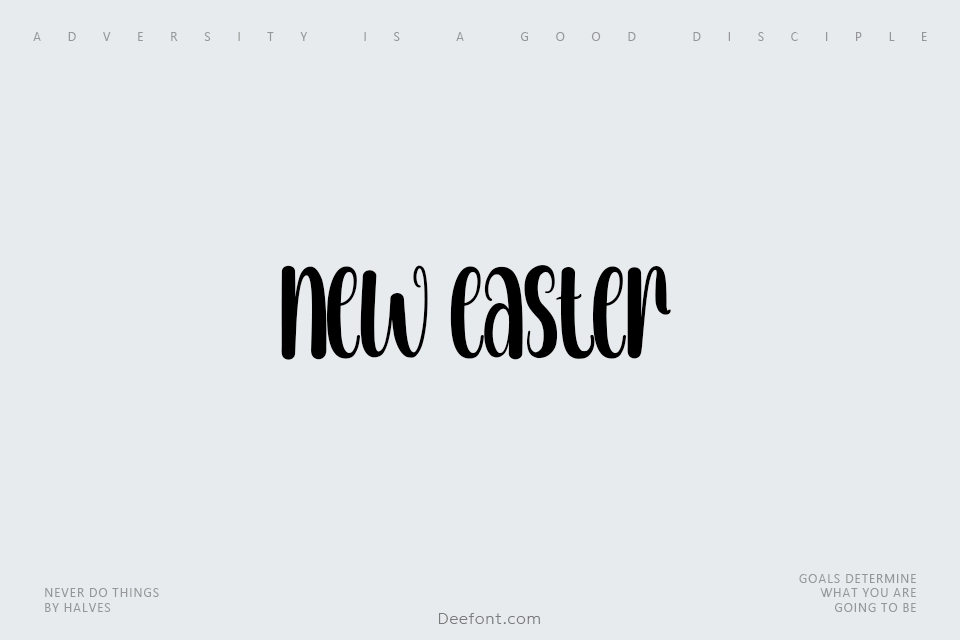 New Easter is a sweet and friendly handwritten display font designed with playful sophistication. This charming script typeface features smooth, flowing strokes perfect for wedding invitations, greeting cards, and creative projects that need a warm personal touch. The font combines elegant curves with casual letterforms, making it ideal for celebratory designs and festive applications.