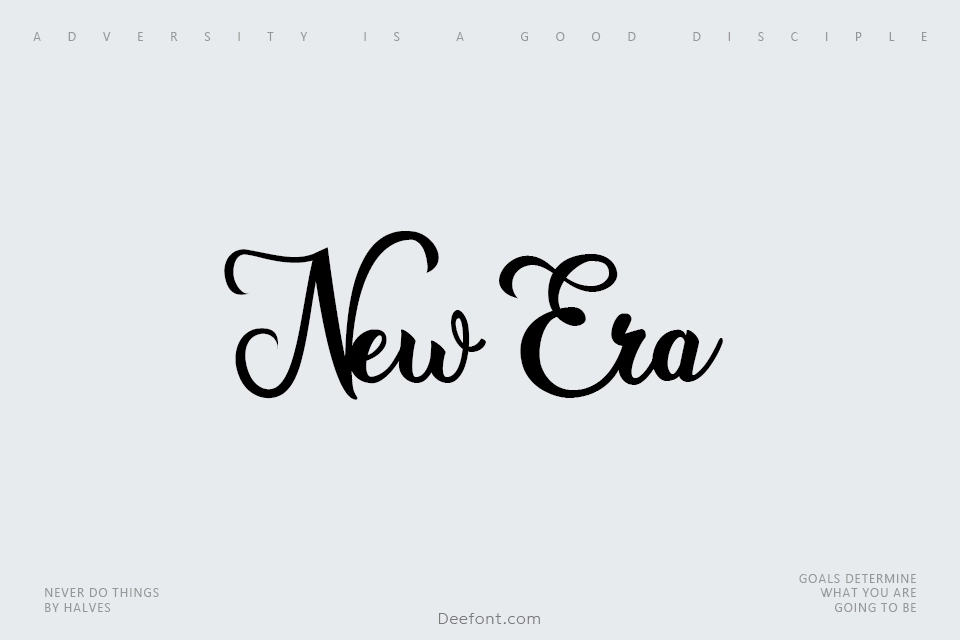 New Era is an elegant and flowing calligraphy font designed with refined strokes and graceful letterforms that bring sophistication to your creative projects. This unilateral calligraphic typeface features smooth curves and artistic details that make it perfect for elegant designs, wedding invitations, and sophisticated branding work. The font combines classical calligraphic elements with contemporary styling, offering a versatile solution for both formal and decorative applications. With its partial character set including capitals, lowercase letters, and select symbols, New Era delivers professional results for designers seeking to add an artistic touch to their typography.