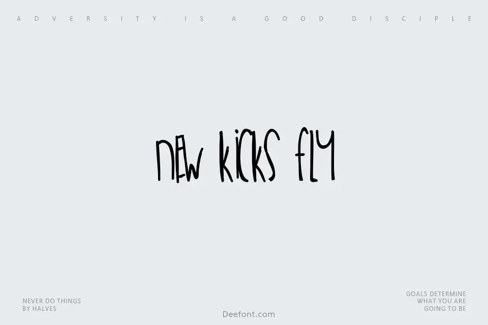 New Kicks Fly is a vibrant, energetic handwritten display font that captures the essence of casual, playful typography. With its bouncy character forms and organic stroke variations, this typeface brings a lively, youthful energy to any design project. The flowing letterforms feature natural pen-drawn qualities with rounded terminals and dynamic letterpress aesthetics. Ideal for posters, greeting cards, social media graphics, casual branding, party invitations, and creative titles where a friendly, approachable tone is desired. The font’s whimsical personality makes it especially suitable for entertainment, lifestyle, and youth-oriented applications.