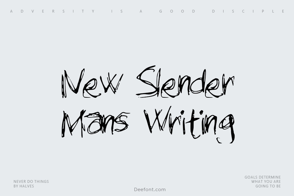 New Slender Mans Writing is a captivating script font that exudes mystique and intrigue with its distinctive design. Featuring slender, elongated letterforms and an almost ghostly appearance, this unorthodox typeface is perfect for creating eccentric headings in comic books, horror-themed designs, and avant-garde editorial layouts. The font’s irregular style makes it an ideal choice for those seeking to add a sense of the unconventional and unsettling to their creative projects, from video games to unique typography applications.