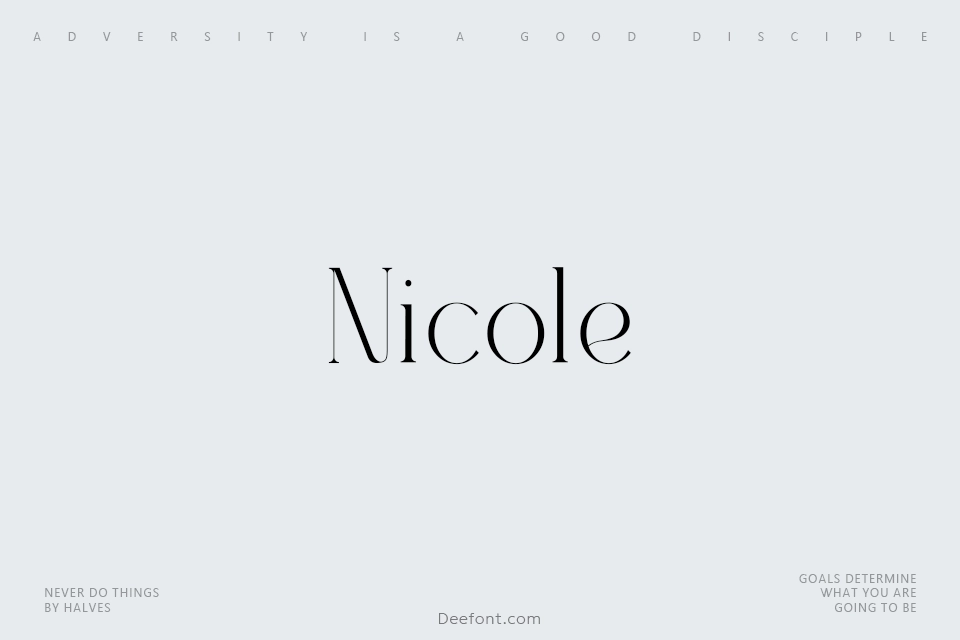 Nicole is a light-weight display font created by Tokopress that masterfully captures the essence of retro style. With its slender and sleek contours, the font evokes an air of elegance that is both timeless and modern. Perfect for crafting standout graphics, headers, logos, and branding projects, Nicole combines vintage vibes with contemporary clarity. Its classic aesthetic charm makes it an ideal choice for designers aiming to blend nostalgic design traditions with modern sophistication in both digital media and print applications.