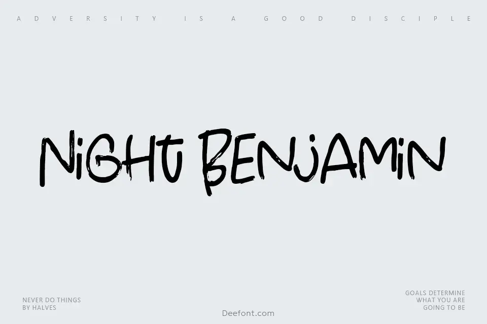 Night Benjamin is a gritty script trash font with rough, inky strokes, irregular edges and a distressed handmade feel that instantly evokes horror and suspense. Its bold, chaotic letterforms create a dramatic, high-impact look perfect for scary movie titles, Halloween posters, haunted house flyers, eerie social media graphics and eye-catching display headlines. Use this font when you need an edgy, fear-inducing aesthetic that still remains readable at large sizes across logos, packaging, banners and bold typography compositions.