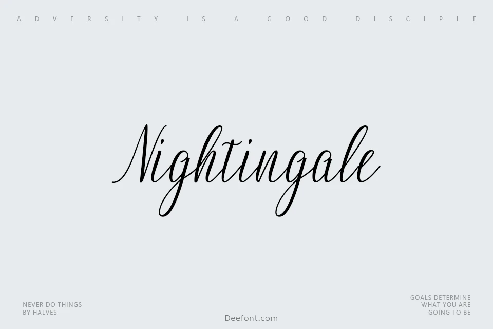 Nightingale Handwriting Font is a modern calligraphy typeface designed by Font Bundles. This font features natural, handwritten strokes and unique calligraphic forms, perfect for adding an elegant and contemporary touch to invitations, branding, and creative projects. Its flowing style and distinctive character set make it ideal for designers seeking a modern yet personal handwriting script.