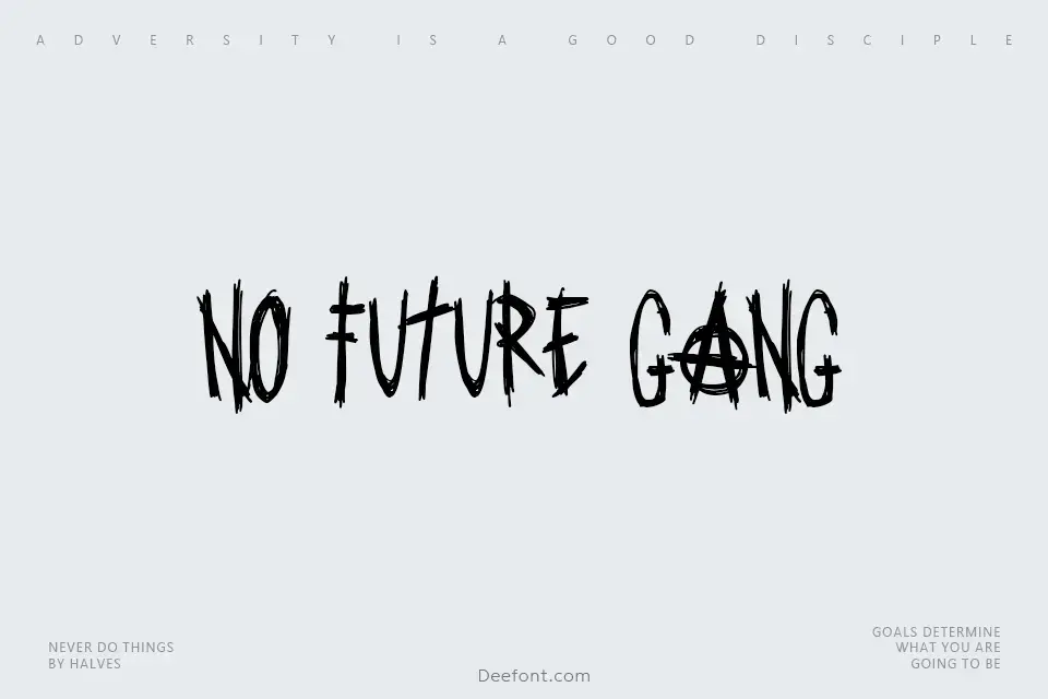 No Future Gang is an audacious punk-inspired display typeface that channels raw rebellion through condensed letterforms and distressed characteristics. This script font exudes an edgy, trash aesthetic ideal for creating striking visual impact on posters, music album covers, and street art projects. With its unique urban sensibility and rugged appearance, it captivates designers seeking to infuse authentic punk attitude into headlines, logos, and provocative branding statements. The font’s distinctive style makes it an excellent choice for high-impact display typography wherever bold, unconventional design is desired.