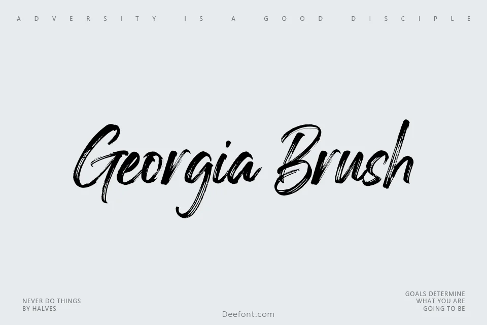 Georgia Brush is a dynamic and energetic handwriting brush font featuring bold, fluid strokes with a handwritten appearance. Designed for creative projects, it combines artistic flair with versatility, making it ideal for branding, posters, invitations, and social media graphics. The font exhibits varying stroke thickness that adds depth and texture, perfect for adding a personal touch or making a bold creative statement across multiple design applications.